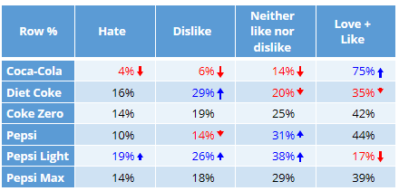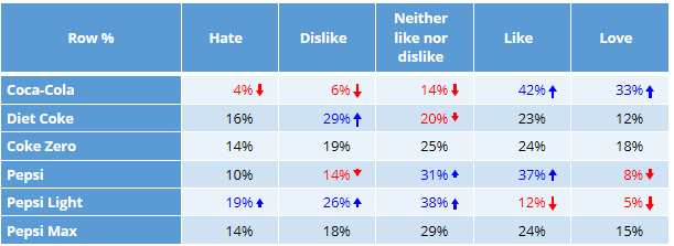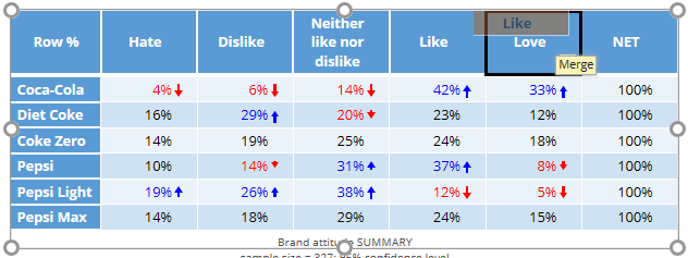 Using the following table, we can drag and drop the second box response (Like) onto the top box response (Love):