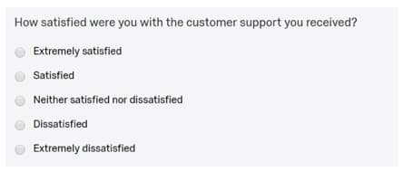 A Top 2 Box score is a common means for reporting results of categorical scale questions in which the top two responses are combined. For example, we can use the following 5-point satisfaction scale: