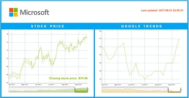 Overview: A one-page dashboard showing stock price and Google Trends data for Microsoft.