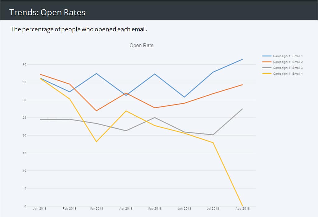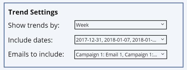 You can choose what dates and emails you want to include, as well as whether you want to see the data by week, by month, or by quarter.