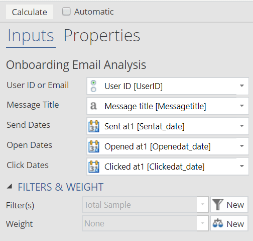 To use your email data with the template, your data needs to be in an Excel spreadsheet. Each row represents an onboarding email sent to a user. The columns of your spreadsheet should contain the following information: