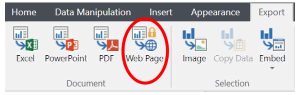 Once your dashboard is all set up, it’s time to export it! To publish your dashboard as a web page, go to Export in the ribbon and click Web Page. This will create your published dashboard. You can share this link with anyone you like, and they can navigate through the dashboard. If you need to go back and change anything, you can just click Embed > Update All and your published dashboard will update.