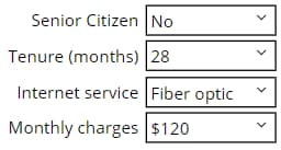 The item names in the control must exactly match the values of the variables in the data set. It is for this reason that the MonthlyCharges code is a bit more complicated, as it needs to strip out the $ from the control and convert it into a number (as the variable in the data set just contains numbers).