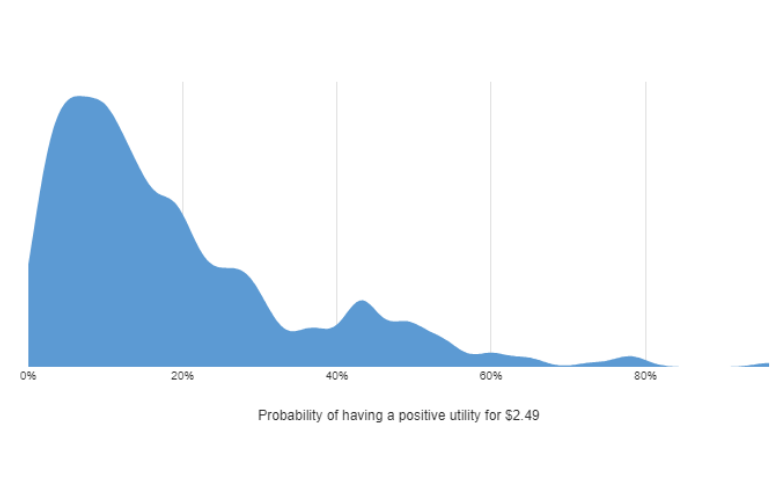 I’d want to give a respondent the benefit of the doubt, and only exclude their data if I was 90% sure that their data showed they have a positive utility for price. If we do this calculation, we discover that there is only 0.3% of respondents (1 person), that we need to throw out based on their having provided irrational pricing data.