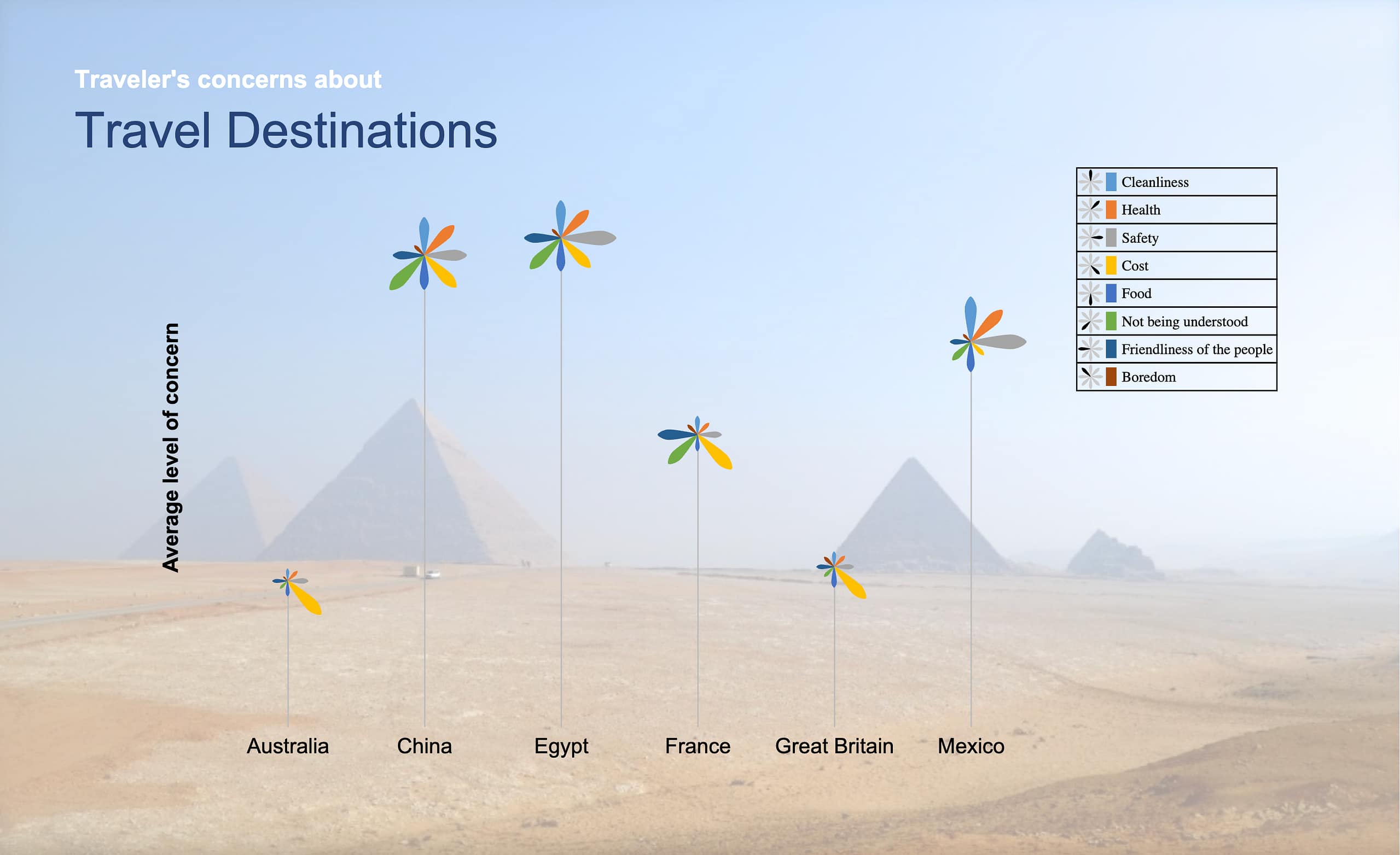 The example below uses a Palm Tree plot, an interactive and impressive visualization. The Palm Tree Plot works well for multi-dimensional data (e.g., when you have big tables that cut across two dimensions). The impact of the visualization can be increased when you insert a background to the dashboard. This background uses perspective, which make the chart even more entertaining.