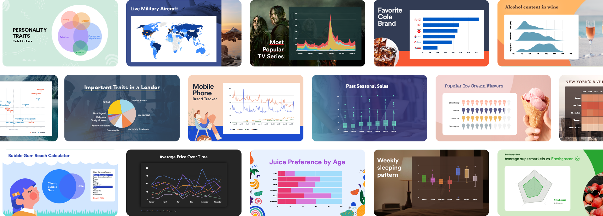 Easily create beautiful, interactive dashboards and online reports. Make bar graphs, pie charts, venn diagrams, line graphs, histograms and everything in between with Displayr’s graph maker. Import data in seconds and easily switch between different types of graphs to find the best presentation of your data.