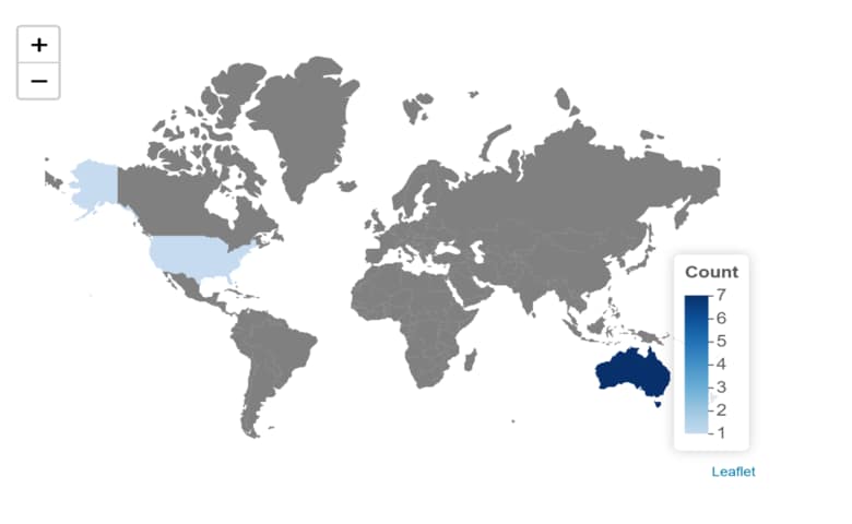 The IP addresses collected can be used to identify the location of the respondents. With that information, we can easily plot a map showing which countries our responses came from. To read more about geocoding IPs, see this post