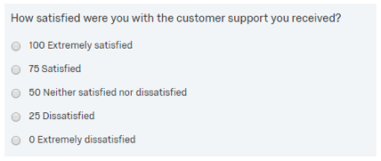 Different scales can be used as well depending. Whereas the above example uses a 1 to 5 scale, this could just have easily used a 0 to 100 scale.