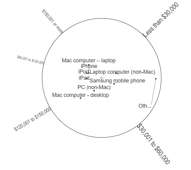 For example, here I have created a table based on some data from a survey about technology brands. The table shows the devices people own across different income brackets.