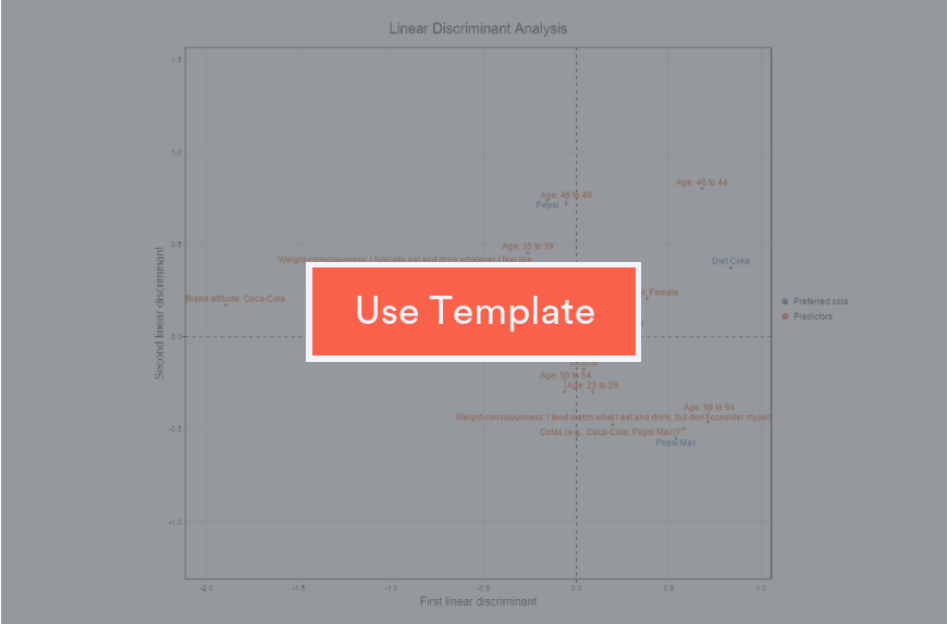 Displayr also makes Linear Discriminant Analysis and other machine learning tools available through menus, alleviating the need to write code. There's even a template custom made for Linear Discriminant Analysis, so you can just add your data and go.