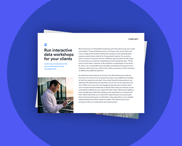 Switching to an agile workflow, creating agile products, and moving to cloud reporting and interactive dashboarding are all ways to reduce time and cost inefficiencies while providing more value for your clients. Meanwhile, offering closed-loop feedback systems are a great way of improving customer experience analyses and are vital for keeping companies that are increasingly focused on CX, happy. Offering text data analysis and moving into new and emerging markets that are a natural fit for market researchers are also great ways of expanding your service offerings and exploring different pricing models.