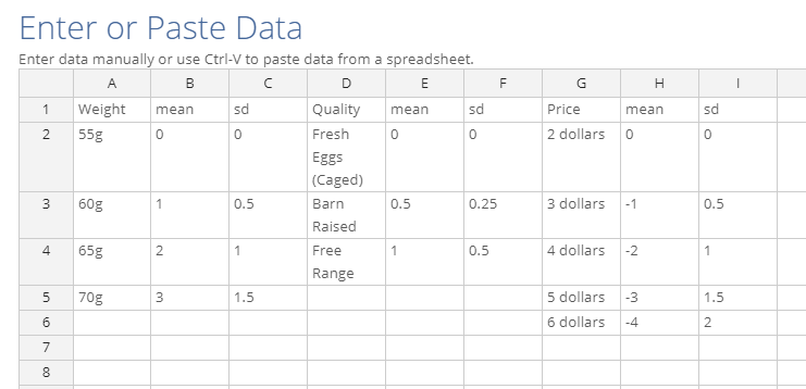 For the example in this article, I will be using a choice model experimental design with eggs attributes (Weight, Quality, Price) generated using the Efficient algorithm.