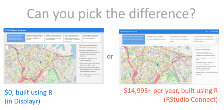 It is now possible to create public dashboards, based on R code, for free! To illustrate how it works, I’ve used the free version of Displayr to create a copy of RStudio Connect’s HTML Widgets Showcase. Getting started The first step is to click this link which will prompt you to sign up. Sign up is free. Then all you […]