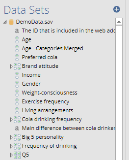 Each item underneath DemoData.sav constitutes a variable set, which contains one or more variables.