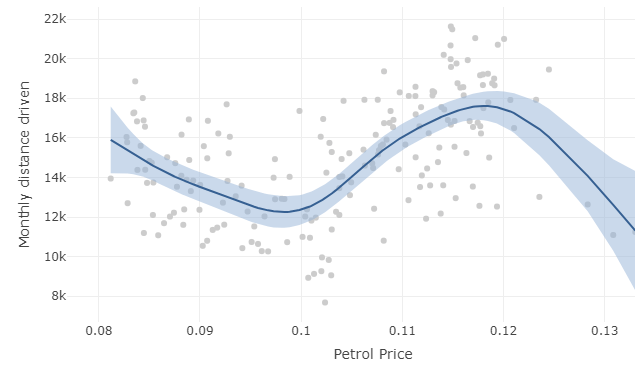 Lines of best fit are often added to scatter plots to make it easier for the viewer to discern the average relationship between the x and y variables. Where these lines are permitted to be curved, they are known as smoothers. In the example below, a confidence band has also been shown to indicate the uncertainty regarding the estimate of the line of best fit.