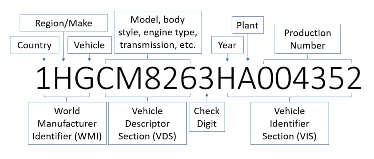 In the case of a vehicle VIN Number, each of its 17 digits hold a unique meaning. By breaking the text up into its parts, you can see codes that signify information like the vehicle’s make, model, body style, and more.